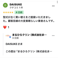 2026/03/28 DAISUKE さま ★★★★★5 型式が古く買い替えをご提案いただきました。顧客目線の大変素晴らしい業者さんです。