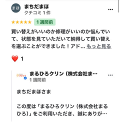 2026/03/25 まちだまほ さま ★★★★★5 買い替えがいいのか修理がいいのか悩んでいて、状態を見ていただいて納得して買い替えを選ぶことができました!アドバイ…