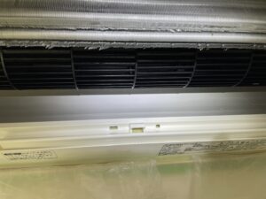 ② 送風ファンにホコリ・カビ汚れが蓄積していくと、ファンが風をかけなくなる傾向になります。