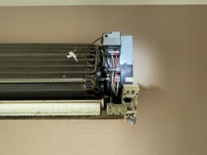 熱交換器・送風ファン共にホコリ汚れが蓄積すると風の流れが悪くなり、風量が低下し、エアコンの効きが悪いと感じるようになります。
