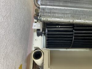 ② 送風ファンにホコリ・カビ汚れが蓄積していくと、ファンが風をかけなくなる傾向になります。