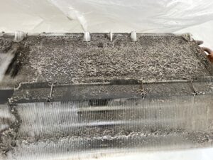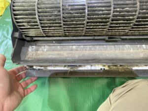 それでもダメだと、メーカーに依頼して点検してもらいますが、メーカー修理スタッフに「これはエアコンの汚れが原因です」と言われてしまいます、、、この流れのクリーニングのご依頼も多いです。