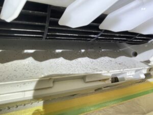 ドレンスライムが発生すると、エアコン各部でドレンの詰まりが起こりやすく、水漏れの原因になります。
