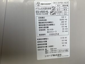 シャープドラム式洗濯機「C25」乾燥ファンモータ異常の修理、伊勢崎市乾町、K様邸 シャープ ES-V600 2014年