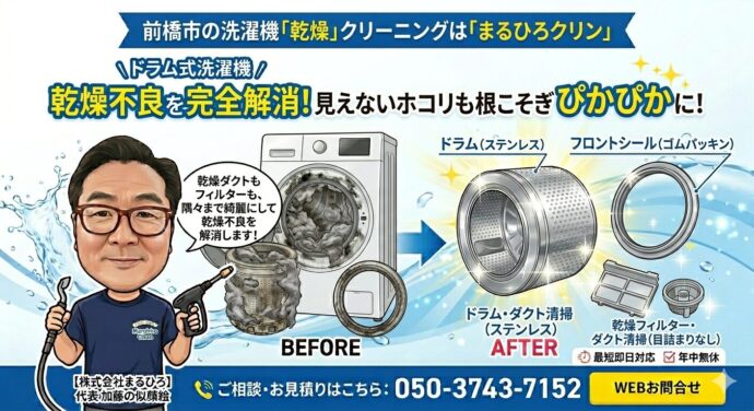 本日は前橋市下新田町、K様邸のドラム式洗濯機 分解クリーニングを実施させて頂きました。