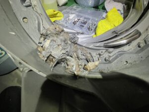 【脱水カバー受けの裏側のホコリ溜まり】