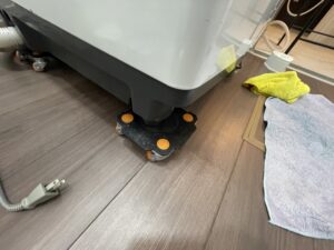 浴室・洗面室(洗濯機場)の周囲へのキズや汚れ防止のための養生をしっかりと行い、