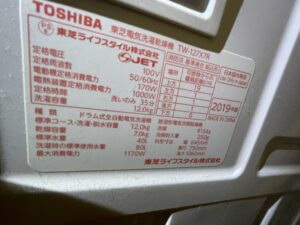 2025/12/28 前橋市江木町、Y様邸 ドラム 東芝TW-127X7R 2019年式