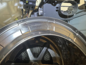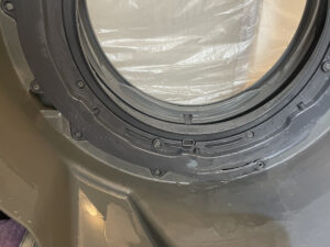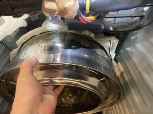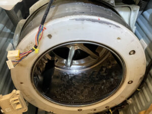 洗濯槽 全面、バランサーを外すと隙間にホコリ・水腐れ 汚れがありますね、