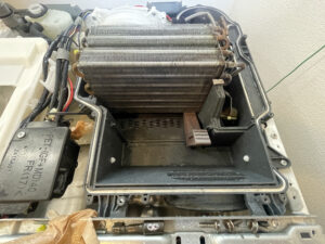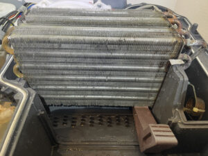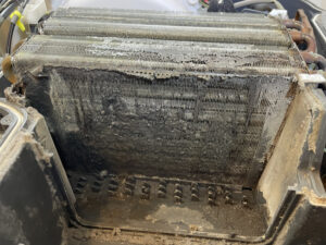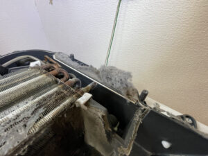 ヒートポンプユニット(熱交換器)の汚れ繊維カス・ホコリ、水腐れが目立ちました!