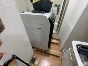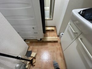 浴室・洗面室(洗濯機場)の周囲へのキズや汚れ防止のための養生をしっかりと行い、