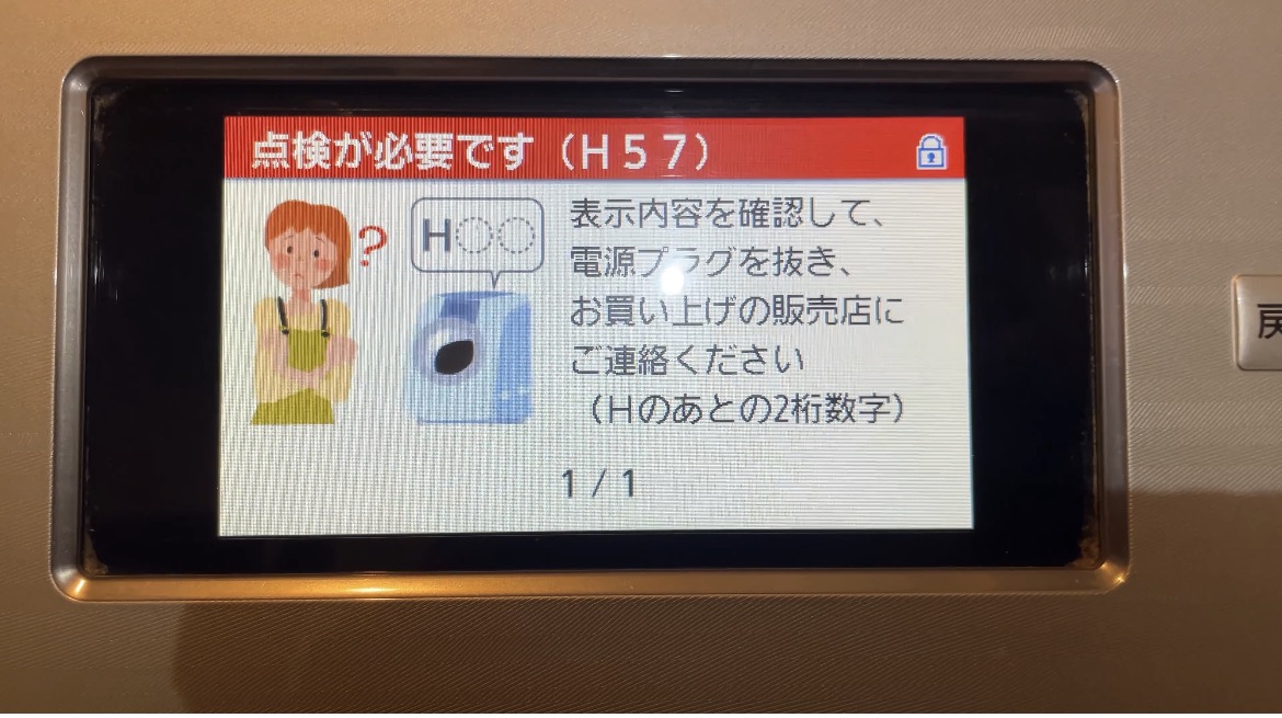 ▲H57エラー(主にモーターの減磁(磁力低下)や回転異常、または回路の電気的負荷異常を示す故障コード