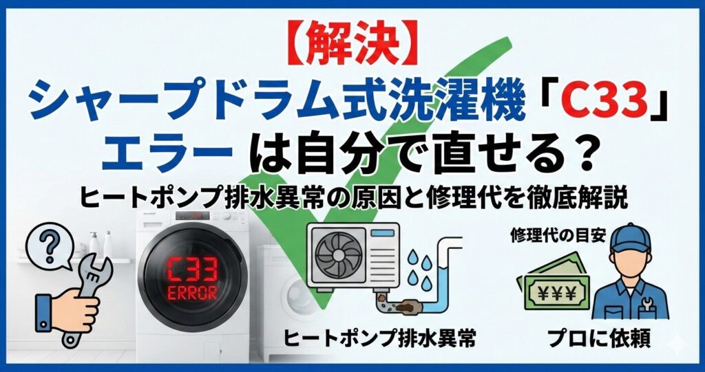 【解決】シャープドラム式洗濯機「C33」エラーは自分で直せる?ヒートポンプ排水異常の原因と修理代を徹底解説