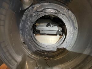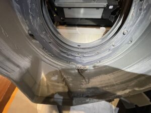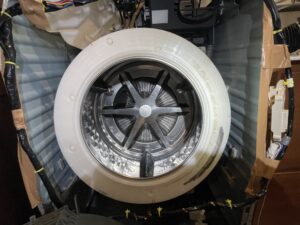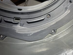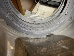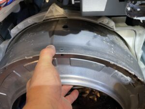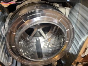 洗濯槽とバランサーの隙間はホコリ汚れがありますね、