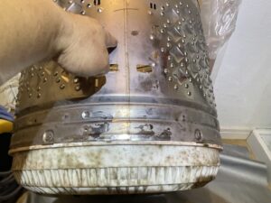 洗濯槽の底部も入り組んだ構造の為、汚れが深くまで入っています、黒カビ雑菌汚れです。