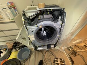 ドラム式洗濯機のクリーニングでは、まず洗濯機を分解します。
