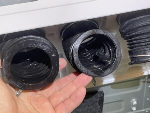 パルセーター裏側も入り組んだ構造の為、カビ汚れが溜まっています、、、
