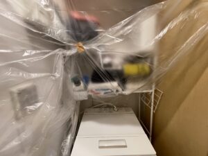 浴室・洗面室(洗濯機場)の周囲へのキズや汚れ防止のための養生をしっかりと行い、