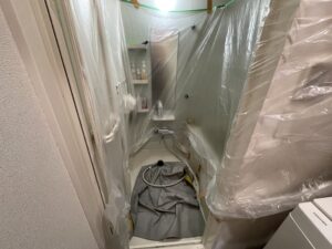 浴室・洗面室(洗濯機場)の周囲へのキズや汚れ防止のための養生をしっかりと行い、