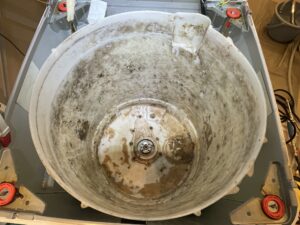 洗濯槽、洗濯槽下部(底部)入り組んだ構造の為、カビ汚れが溜まっています、、、