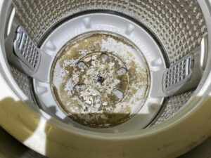 洗濯槽の底部も入り組んだ構造の為、汚れが深くまで入っています、黒カビ雑菌汚れです。