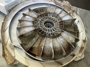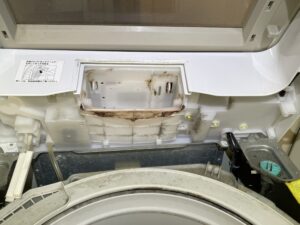 洗濯槽の底部も入り組んだ構造の為、汚れが深くまで入っています、黒カビ雑菌汚れです。