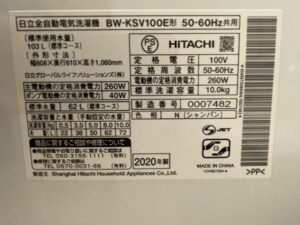日立BW BW-KSV100E 2020年