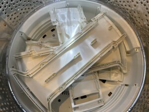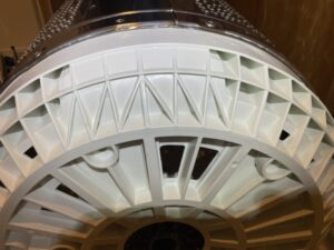 洗濯槽、洗濯槽下部(底部)入り組んだ構造の為、カビ汚れが溜まっています、、、