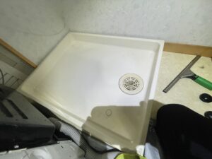 浴室・洗面室(洗濯機場)の周囲へのキズや汚れ防止のための養生をしっかりと行い、