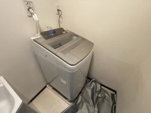 浴室・洗面室(洗濯機場)の周囲へのキズや汚れ防止のための養生をしっかりと行い、