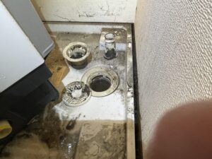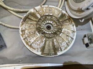 洗濯槽の底部も入り組んだ構造の為、汚れが深くまで入っています、黒カビ雑菌汚れです。