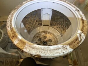 洗濯槽、洗濯槽下部(底部)入り組んだ構造の為、カビ汚れが溜まっています、、、