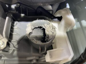 ③ ヒートポンプ内(熱交換器入口)の糸くずホコリ蓄積による詰まり