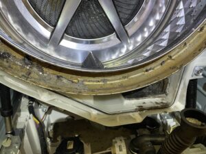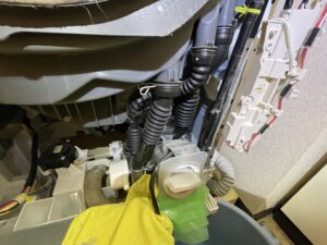 『 洗濯機の排水が出来ずに困っている。 』とのことで、分解クリーニングで ご依頼頂きました。