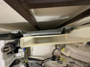 ドラム式洗濯機の隙間に物(割りばし・歯ブラシ・ブラシ等)を落としてしまった場合、自然に出てくることは期待できません。洗濯機の部品を分解して直接取り出す必要があります。