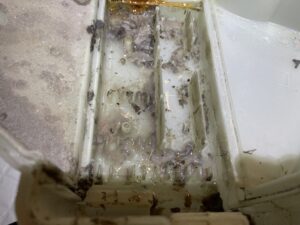 (一般的なご家庭で毎日乾燥を使うご家庭で約4年程で乾燥経路に長年の繊維くず・ホコリが蓄積し詰まり、乾燥機能の低下が起こっています。)