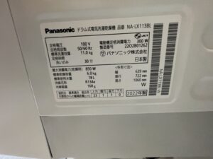 2026/01/23 前橋市大利根町、H様邸 ドラム式洗濯機 パナソニック NA-LX1138L 2022年式