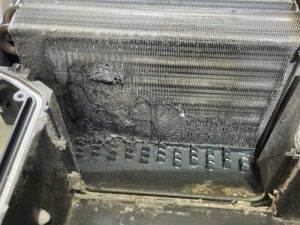 ③ ヒートポンプ内(熱交換器入口)の糸くずホコリ蓄積による詰まり