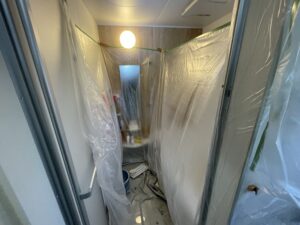 浴室・洗面室(洗濯機場)の周囲へのキズや汚れ防止のための養生をしっかりと行い、